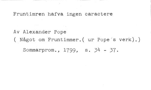 Fruntimren harva ingen caractere //// Av Alexander Pope //// ( Något om Fruntimmer.( ur Pope's verk).) //// Sommarprom., 1799, s. 34 - 37.