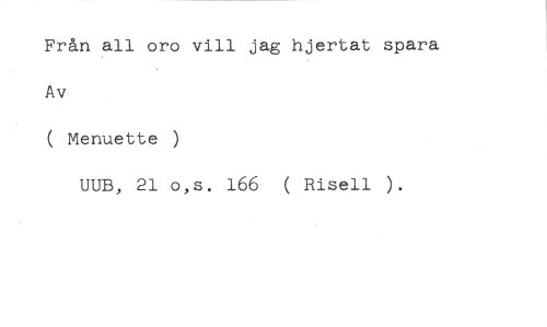 Från all oro vill jag hjertat spara Av //// ( Menuette ) //// UUB, 21 o,s. 166 ( Risell ).