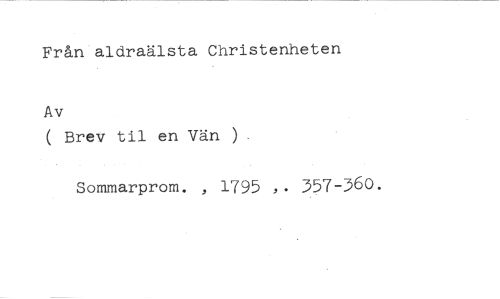 Från aldraälsta Christenheten //// Av //// ( Brev til en Vän ) //// Sommarprom. , 1795 ,. 357-360.