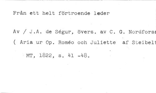 Från ett helt förtroende leder //// Av / J.A. de Segur, övers, av C. G. Nordfors ( Aria ur Op. Romeo och Juliette af Steibell //// MT, 1822, s. 41 -48.