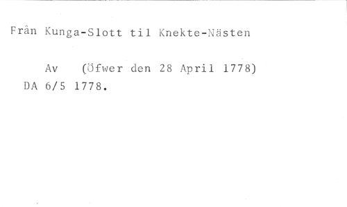 Frän Kunga-Slott til Knekte-Nästen //// Av (Öfwer den 28 April 1778) //// DA 6/5 1778.