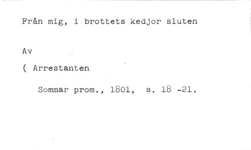 Från mig, i brottets kedjor sluten //// Av //// ( Arrestanten //// Sommar prom., 1801, s. 18 -21.