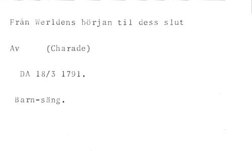 Fran Werldens början til dess slut //// Av (Charade) //// DA 18/3 1791. Barn-säng.