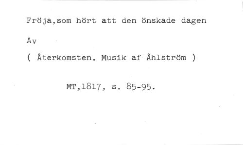 Fröja,som hört att den önskade dagen //// Av //// ( Återkomsten. Musik af Åhlström ) //// MT,1817, s. 85-95.