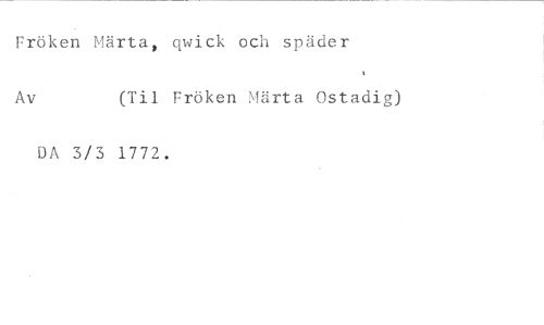 Fröken Märta, owick och späder //// Av (Til Fröken Märta Ostadig) //// DA 3/3 1772.