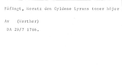 Fåfängt, Horatz den Gyldene Lyrans toner höjer //// Av (We rt he r) //// DA 29/7 1786.