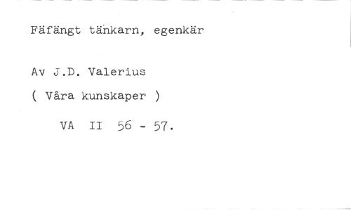 Fäfängt tänkarn, egenkär //// Av J.D. Valerius ( Våra kunskaper //// VA II 56 - 57.