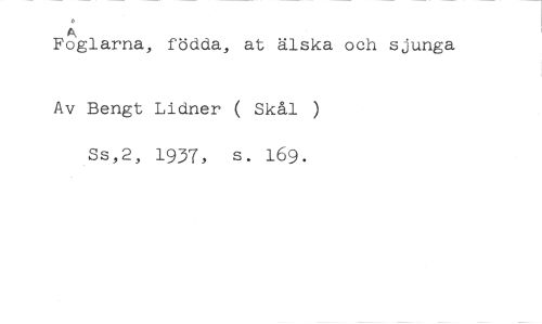 A //// Foglarna, födda, at älska och sjunga //// Av Bengt Lidner ( Skål ) //// 2, 1937, s. 169.