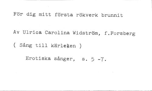 För dig mitt första rökverk brunnit //// Av Ulrica Carolina Widström, f.Forsberg ( Sång till kärleken ) Erotiska sånger, s. 5 -7.