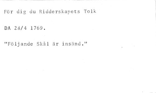 För dig du Ridderskapets Tolk DA 28/4 1769. //// "Följande Skål är insänd."