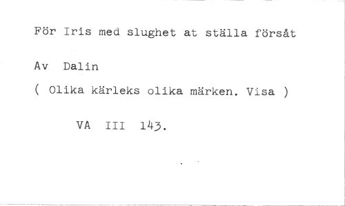 För Iris med slughet at ställa försåt //// Av Dalin //// ( Olika kärleks olika märken. Visa ) //// VA III 143.