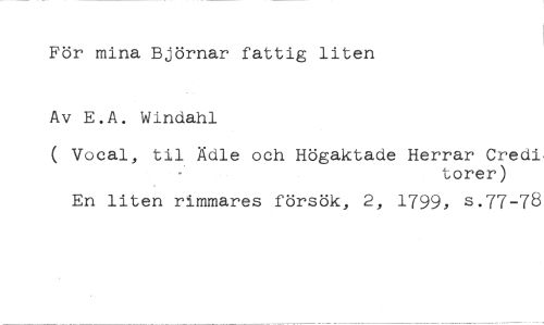 För mina Björnar fattig liten Av E.A. Windahl //// ( Vocal, til Ädle och Högaktade Herrar Credi» //// torer) //// En liten rimmares försök, 2, 1799, s.77-78