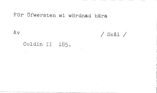 För Öfwersten wi wördnad bära //// Av / Skål //// /Coldin II 185.