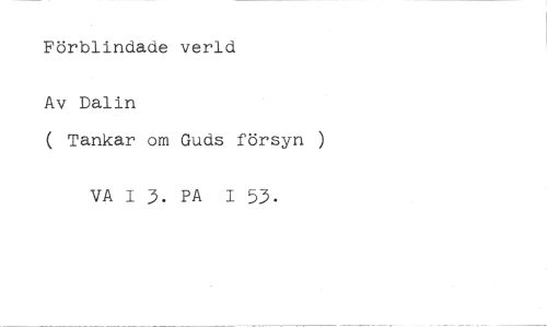 Förblindade verad //// Av Dalin //// ( Tankar om Guds försyn ) //// VA 1 3. PA 1 53.