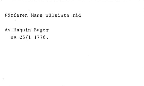 Förfaren Mans wälsinta råd //// Av Haquin Bager DA 23/1 1776.