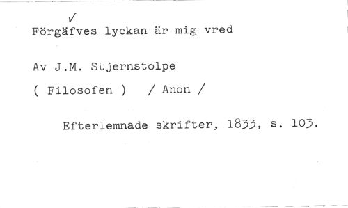 V //// Förgäfves lyckan är mig vred //// Av J.M. Stjernstolpe //// ( Filosofen ) / Anon //// /Efterlemnade skrifter, 1833, s. 103.