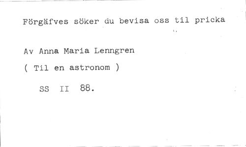 Förgäfves söker du bevisa oss til pricka //// Av Anna Maria Lenngren ( Til en astronom ) //// ss II 88.