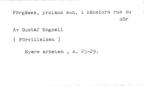 Förgäwes, yrslans son, i känslors rus du //// dör //// Av Gustaf Engzell ( Förvillelsen ) //// Nyare arbeten , s. 25-29.
