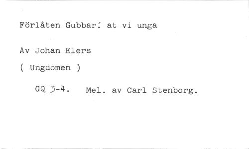 Förlåten Gubbar: at vi unga //// Av Johan Elers ( Ungdomen ) //// GQ 3-4. Mel. av Carl Stenborg.