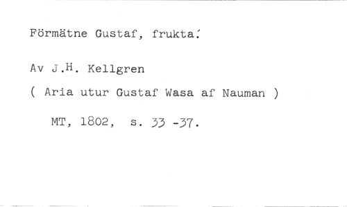 Förmätne Gustaf, frukta: //// Av J.H. Kellgren //// ( Aria utur Gustaf Wasa af Nauman ) //// MT, 1802, s. 33 -37.