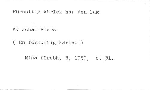 Förnuftig kärlek har den lag //// Av Johan Elers //// ( En förnuftig kärlek ) //// Mina försök, 3, 1757, s. 31.