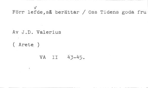 V //// Förr lefde,så. berättar / Oss Tidens goda fru //// Av J.D. Valerius ( Arete ) //// VA II 43-45.