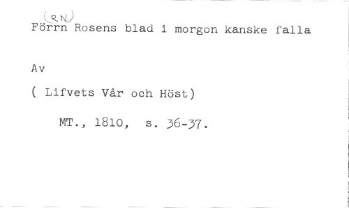 kNvi //// Förrn Rosens blad i morgon kanske falla //// Av //// ( Lifvets Vår och Höst) //// MT., 1810, s. 36-37.