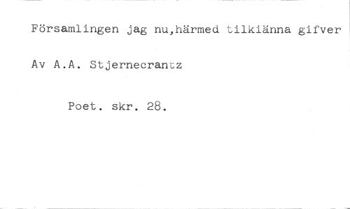 Församlingen jag nu,härmed tilkiänna gifver Av A.A. Stjernecrantz //// Poet. skr. 28.