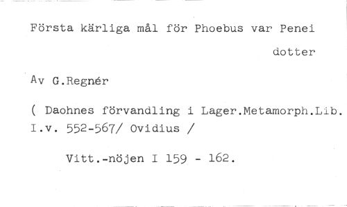 Första kärliga mål för Phoebus var Penei //// dotter //// Av G.RegrAr //// ( Daohnes förvandling i Lager.Metamorph.Lib. I.v. 552-567/ Ovidius //// /Vitt.-nöjen I 159 - 162.