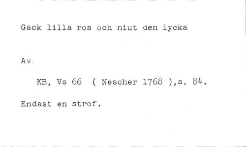 Gack lilla ros och niut den lycka //// Av //// KB, Vs 66 ( Nescher 1768 ),s. 84. //// Endast en strof.