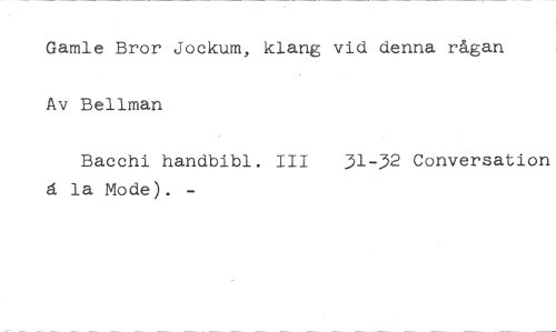 Gamle Bror Jockum, klang vid denna rågan Av Bellman //// Bacchi handbibl. III 31-32 Conversation //// å la Mode). -