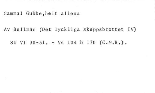 Gammal Gubbe,helt allena //// Av Bellman (Det lyckliga skeppsbrottet IV) SU VI 30-31. - Vs 104 b 170 (C.M.B.).