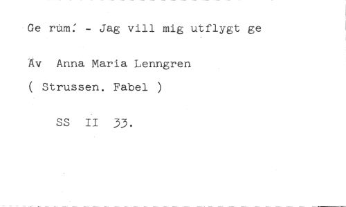 Ge rtm: - Jag vill mig utflygt ge //// Äv Anna Maria Lenngren ( Strussen. Fabel ) //// SS II 33.