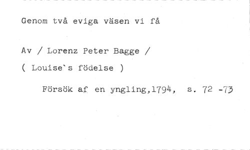 Genom två eviga väsen vi få //// Av / Lorenz Peter Bagge / ( Louise's födelse ) //// Försök af en yngling,1794, s. 72 - 3
