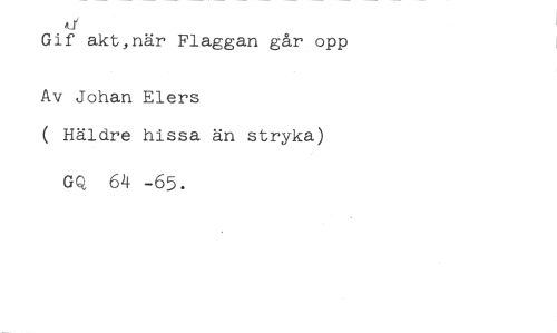 d //// Gif akt,när Flaggan går opp //// Av Johan Elers //// ( Häldre hissa än stryka) //// GQ 64 -65.