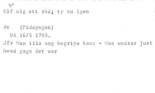 Gif mig ett råd; ty nu igen //// Av (Pädagogen) //// DA 16/5 1793. //// Jfr Man illa nog begripa kan: - Man undrar just hwad gagn det war