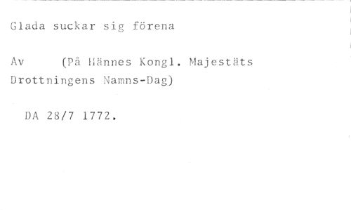 Glada suckar sig förena //// Av (På Hännes Kongl. Majestäts //// Drottningens Namns-Dag) //// DA 28/7 1772.