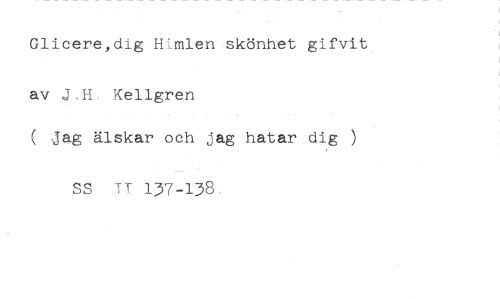 Glicere,dig Himlen skönhet gifvit //// av J.H. Kellgren //// ( Jag älskar och jag hatar dig ) //// SS TT 137-138.