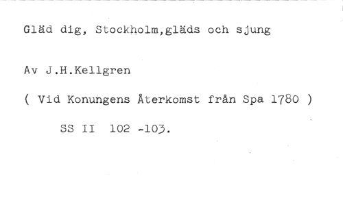 Gläd dig, Stockholm,gläds och sjung //// Av J.H.Kellgren //// ( Vid Konungens Återkomst från Spa 1780 ) SS II 102 -103.