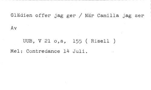 Glädjen offer jag ger / När Camilla jag ser Av //// UUB, V 21 o,s, 155 ( Risell ) Mel: Contredance 14 Juli.