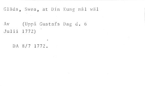 Gläds, Swea, at Din Kung mål wäl //// Av (Uppå Gustafs Dag d. 6 //// Juni 1772) • //// DA 8/7 1772.