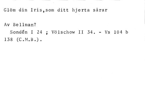 Glöm din Iris,som ditt hjerta sårar //// Av Bellman? //// Sonden I 24 ; Völschow II 34. - Vs 104 b 138 (C.M.B.).