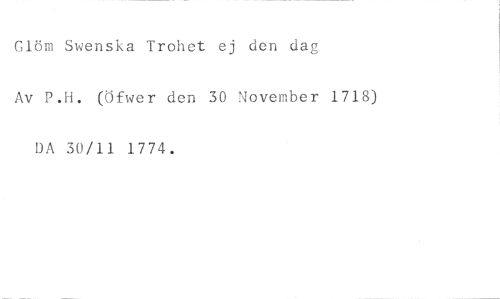 Glöm Swenska Trohet ej den dag //// Av P.H. (Öfwer den 30 November 1718) //// DA 30/11 1774.