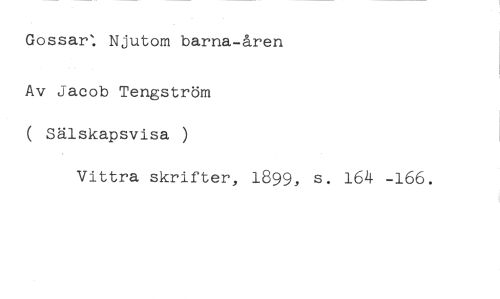 Gossar: Njutom barna-åren //// Av Jacob Tengström ( Sälskapsvisa ) //// Vittra skrifter, 1899, s. 164 -166.