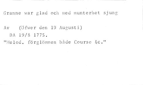 Granne war glad och med munterhet sjung //// Av (Jfwer den 19 Augusti) //// DA 19/8 1775. //// "Melod. förglömmen både Course &c."