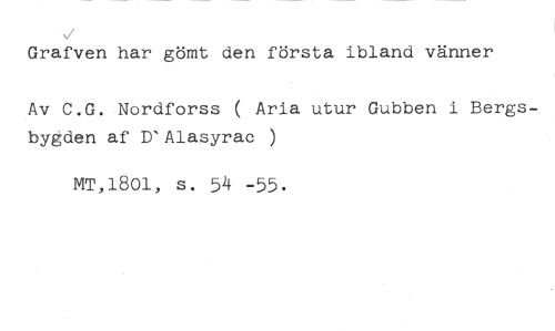 Grafven har gömt den första ibland vänner //// Av C.G. Nordforss ( Aria utur Gubben i Bergsbygden af D'Alasyrac ) //// MT,1801, s. 54 -55.
