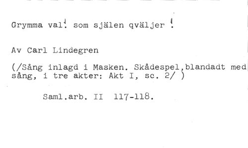 Grymma val. som själen qväljer Av Carl Lindegren //// (/Sång inlagd i Masken. Skådespel,blandadt med sång, i tre akter: Akt I, se. 2/ ) //// Saml.arb. II 117-118.