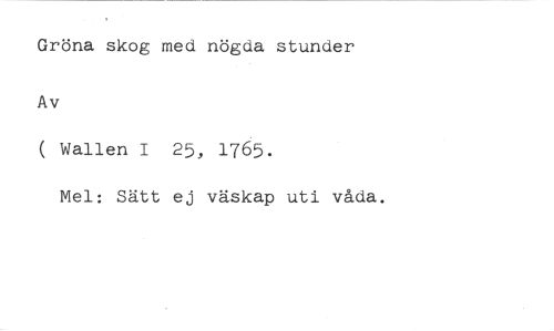Gröna skog med nögda stunder //// Av //// ( Wallen I 25, 1765. //// Mel: Sätt ej väskap uti våda.