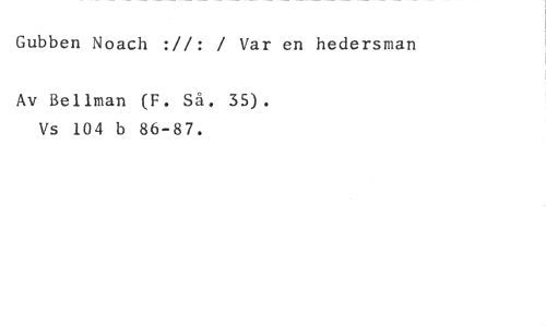 Gubben Noach ://: / Var en hedersman //// Av Bellman (F. Så. 35). Vs 104 b 86-87.