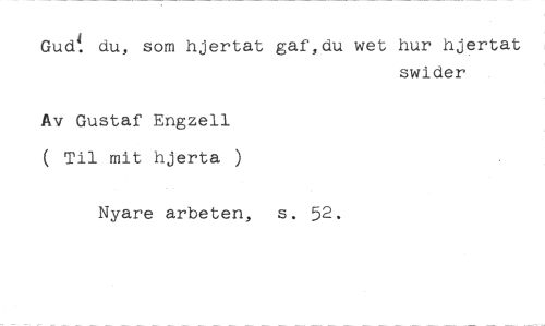 Gud! du, som hjertat gaf,du wet hur hjertat //// swider //// Av Gustaf Engzell ( Til mit hjerta ) //// Nyare arbeten, s. 52.
